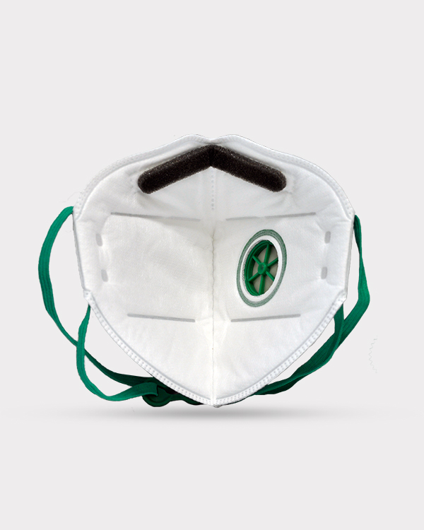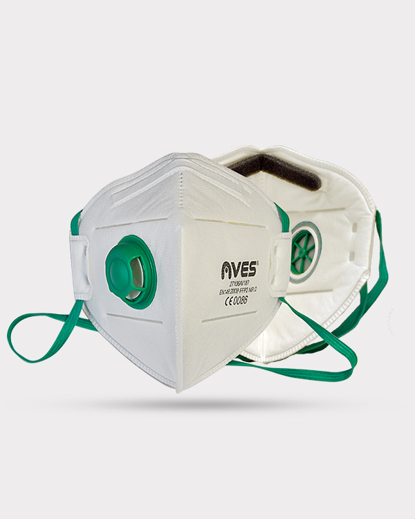 Flat fold high filtration FFP2 dust mask with exhalation valve. It has contour design, and bendable nosepiece. Made for working environments in which deleterious and mutagenic particles can be found in the breathing air.